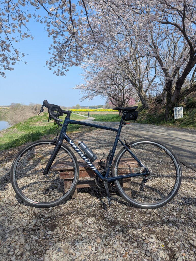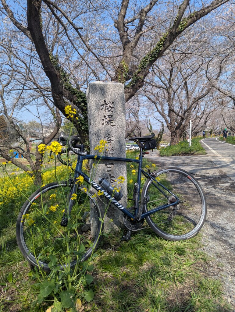 - お花見をしていますがそれなりに家から近かったため補給食はなし。今年は温かいせいか桜の満開が少し早かったとのこと。水分だけ取ってのライドでした。